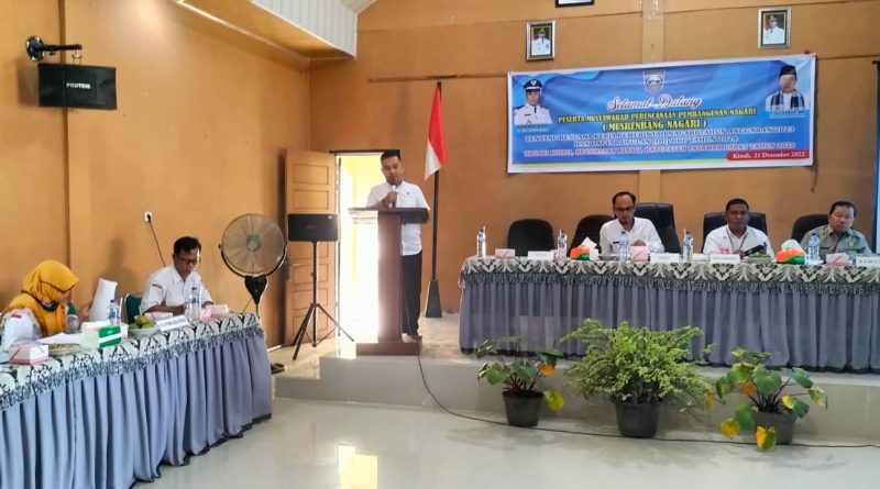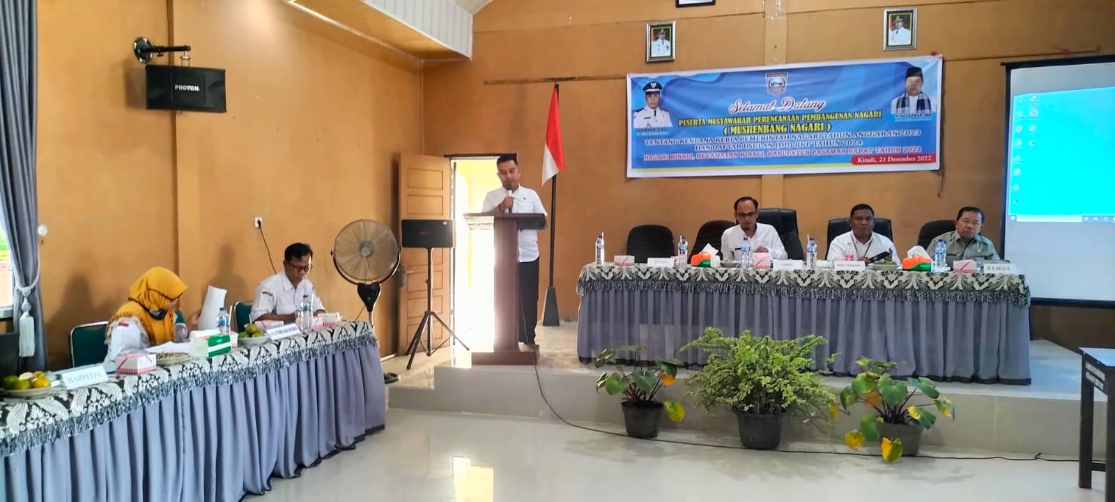 PASAMAN BARAT, Pemerintah Nagari Kinali, Kecamatan Kinali, Kabupaten Pasaman Barat melaksanakan musyawarah perencanaan Pembangunan Nagari (Musrenbang) tentang rencana tahun anggaran 2023 dan daftar usulan (DU) RKP tahun 2024 di aula kantor Nagari Kinali Rabu (21/12).