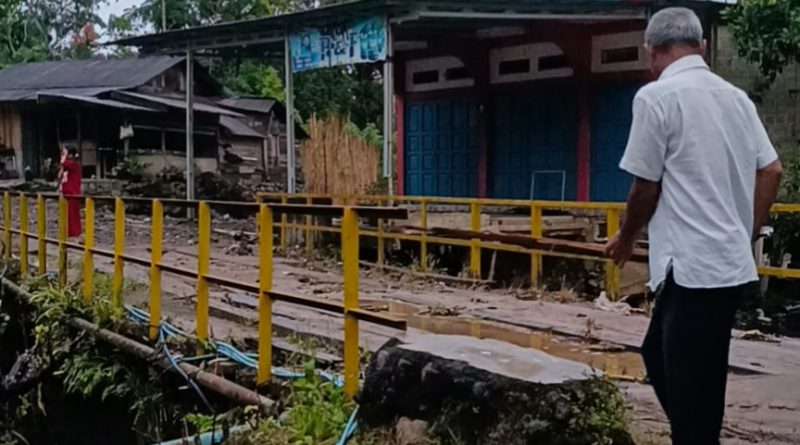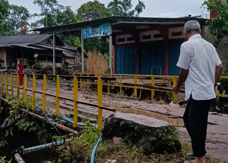 Camat mengatakan akibat hantaman air itu kondisi jembatan sudah sangat parah terkikis dan hampir ambruk.