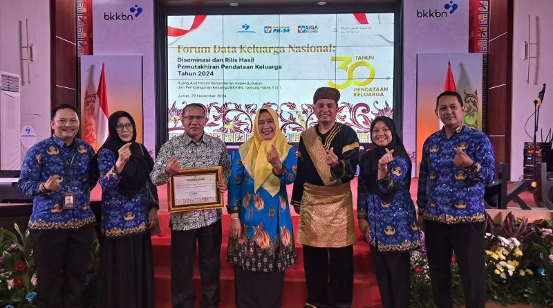 Piagam apresiasi kategori kabupaten/kota dengan pemanfaatan data hasil pendataan keluarga terbaik tahun 2024 itu diterima langsung oleh Pelaksana Tugas Kepala Bappelitbangda Pasbar, Ikhwanri, dalam acara Forum Data Keluarga Nasional yang turut diisi dengan diseminasi dan rilis hasil pemutakhiran pendataan keluarga tahun 2024.