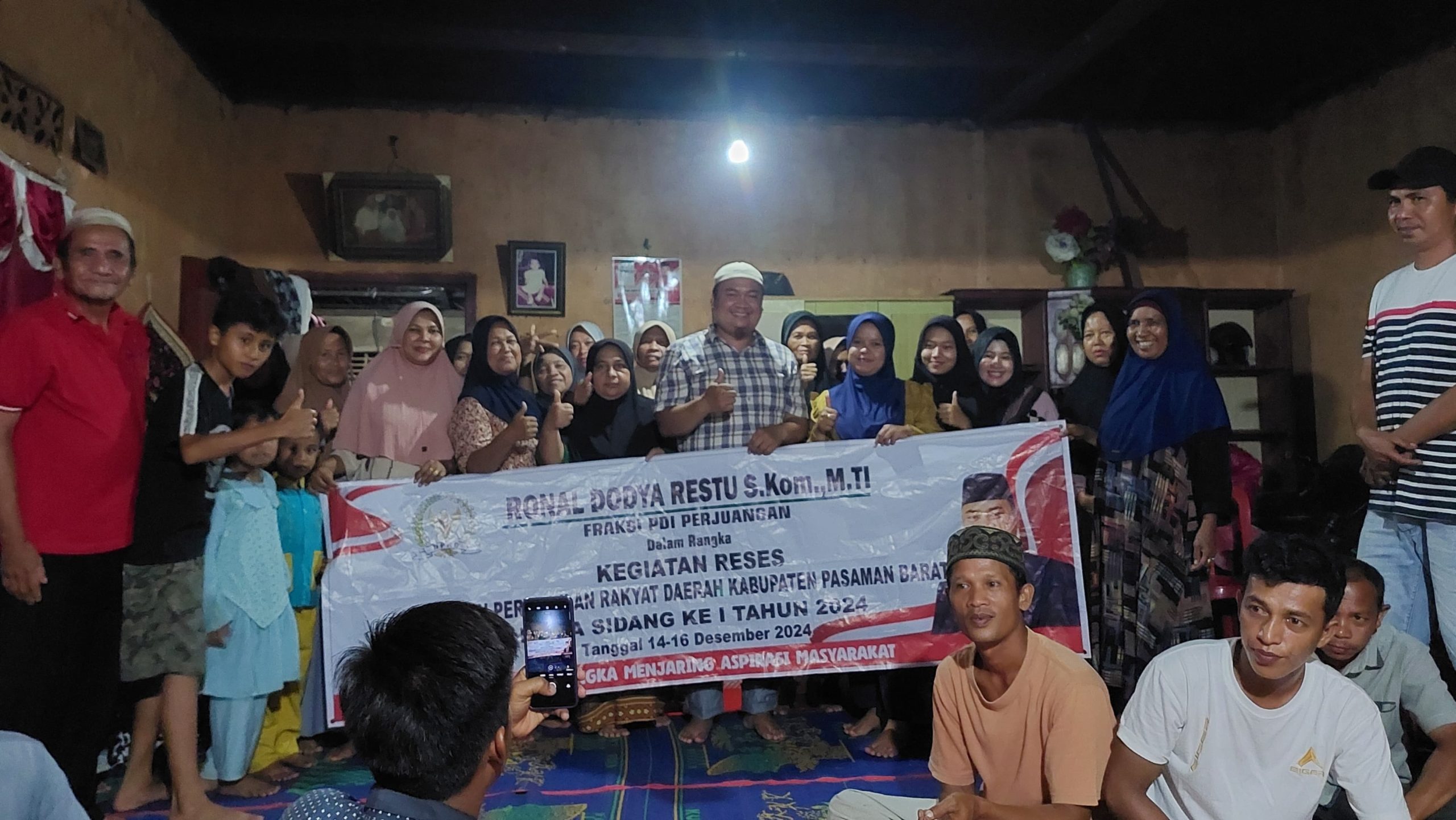 PASAMAN BARAT, KABAHARIAN. COM- Anggota DPRD Kabupaten Pasaman Barat (Pasbar) Ronal Dodya Restu kembali menggelar reses secara individu bertempat di Nagari Pinaga, Kecamatan Talamau, Senin (16/12/2024).