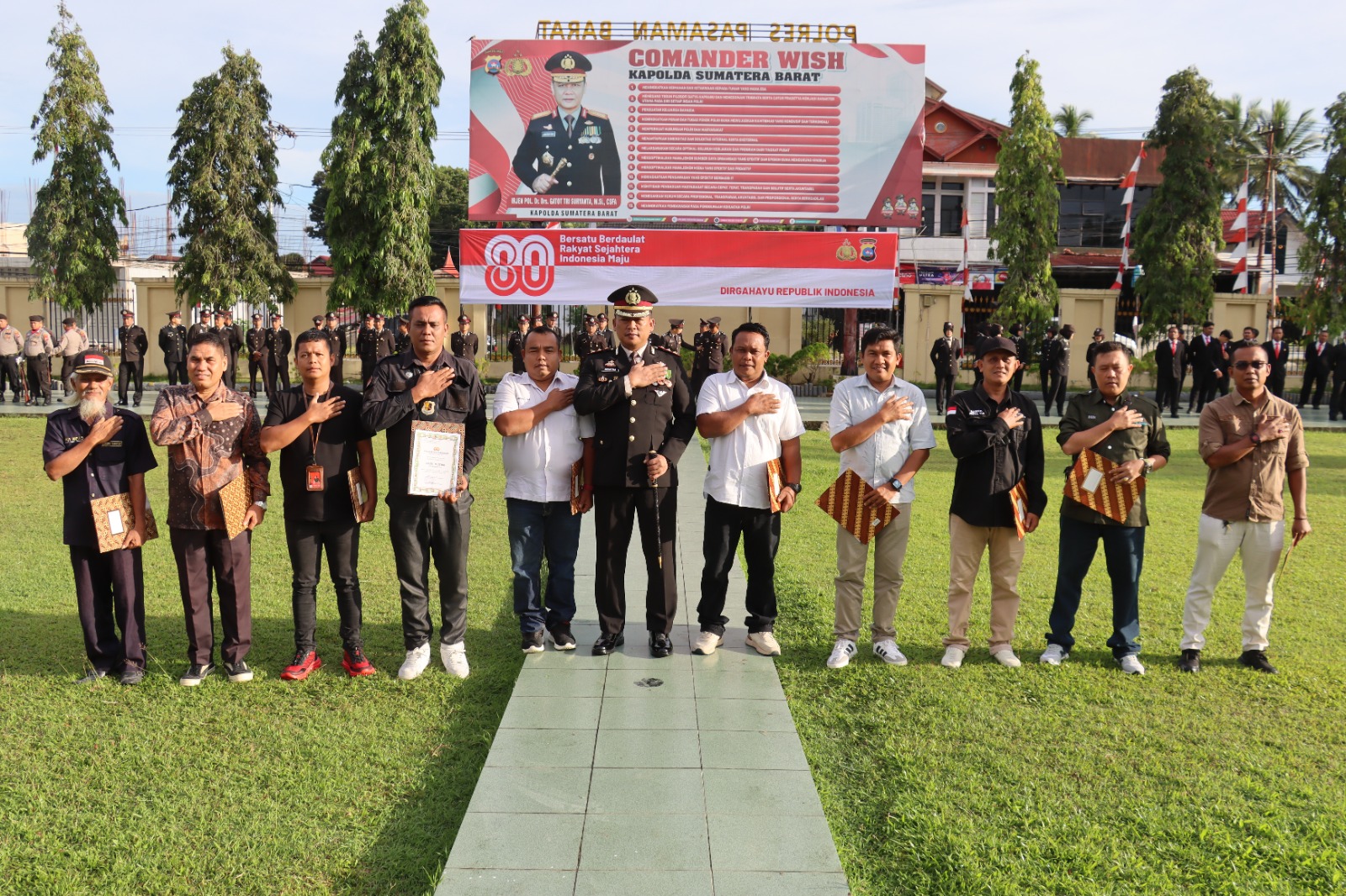 Kapolres Pasbar Pimpin Upacara Pengibaran Bendera Merah Putih dalam Rangka HUT RI ke-80, Sejumlah Wartawan Diberi Penghargaan